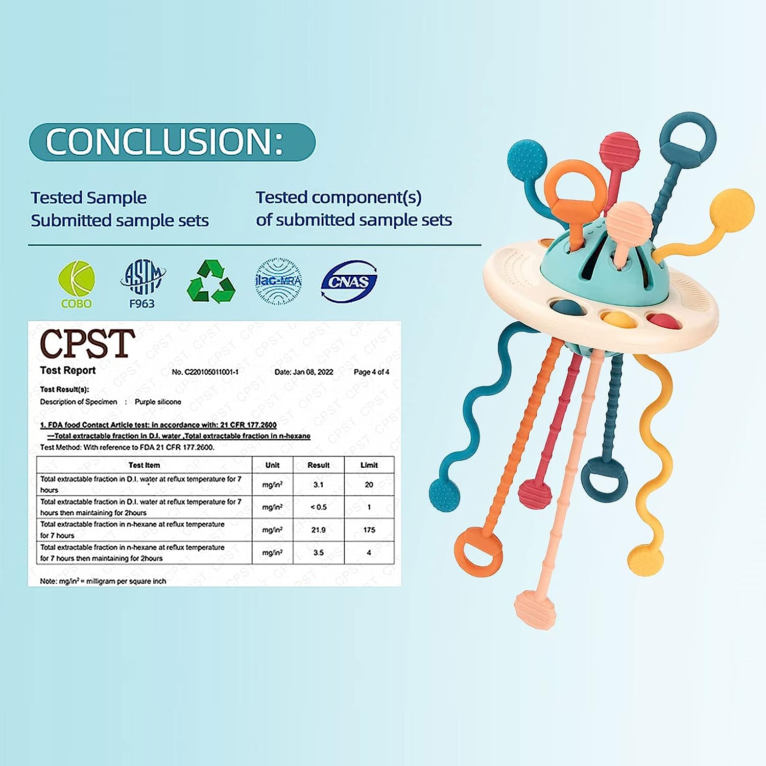 Baby Multi-Sensory Silicone Activity Toy | Fine Motor Skill Development | Vibrant Pull String & Button Features | Safe Phthalate-Free Materials | Travel-Friendly Ufo Design | Ideal for Babies & Toddlers