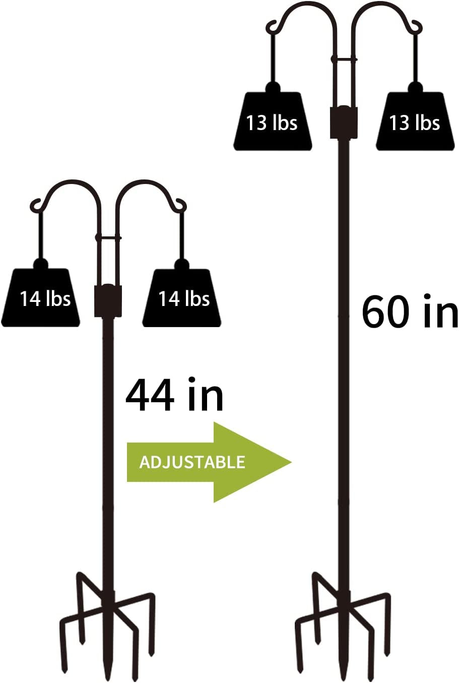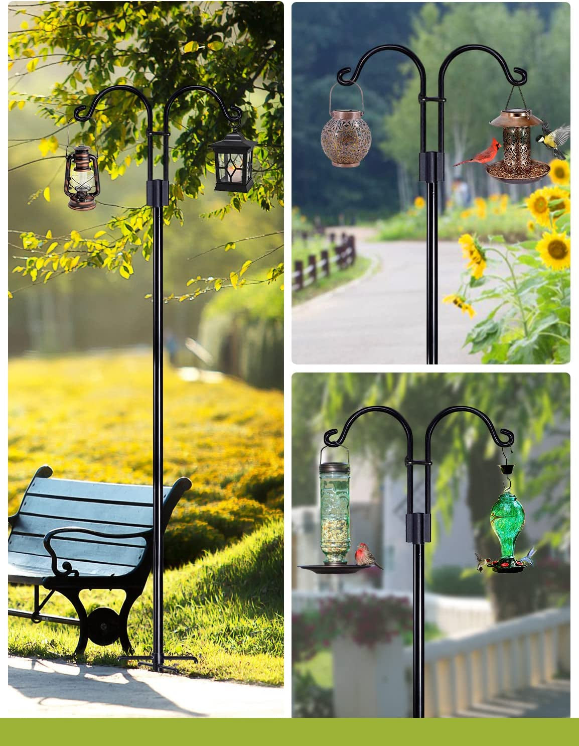 Bird Feeder Pole with 5 Prongs: This double shepherds hook is designed with a 5-prong base, providing an upright posture while firmly planted in the ground. This enhances stability and improves the load-bearing capacity, ensuring reliable and secure support for your items.