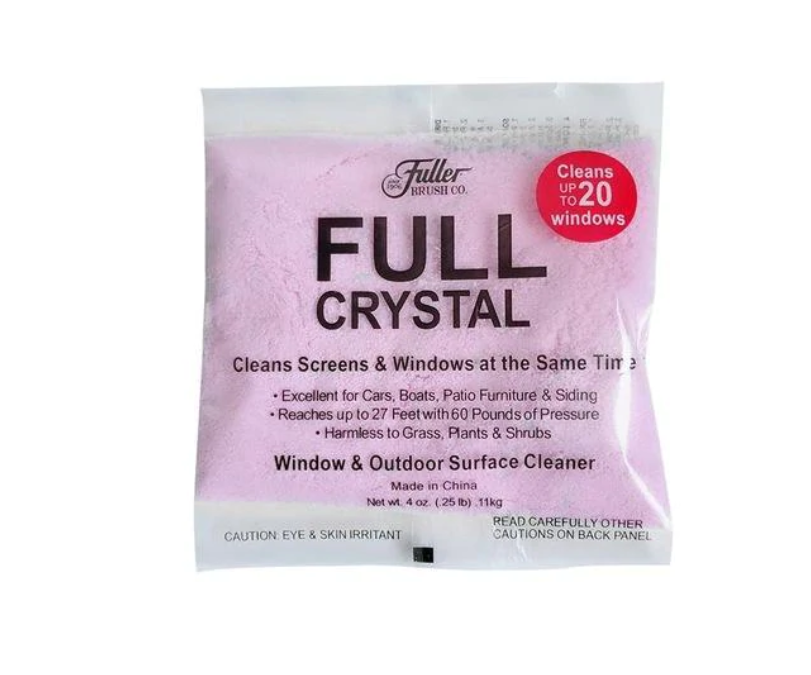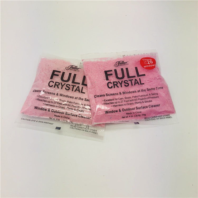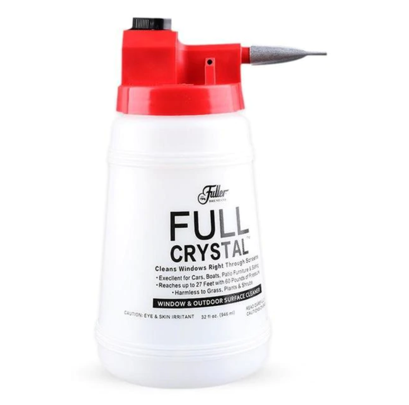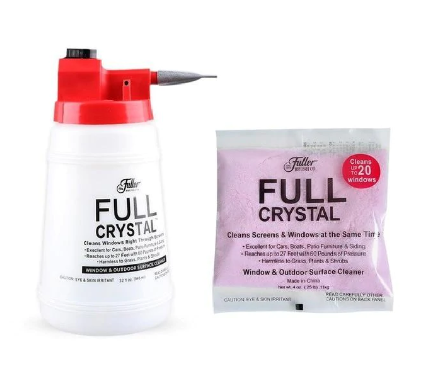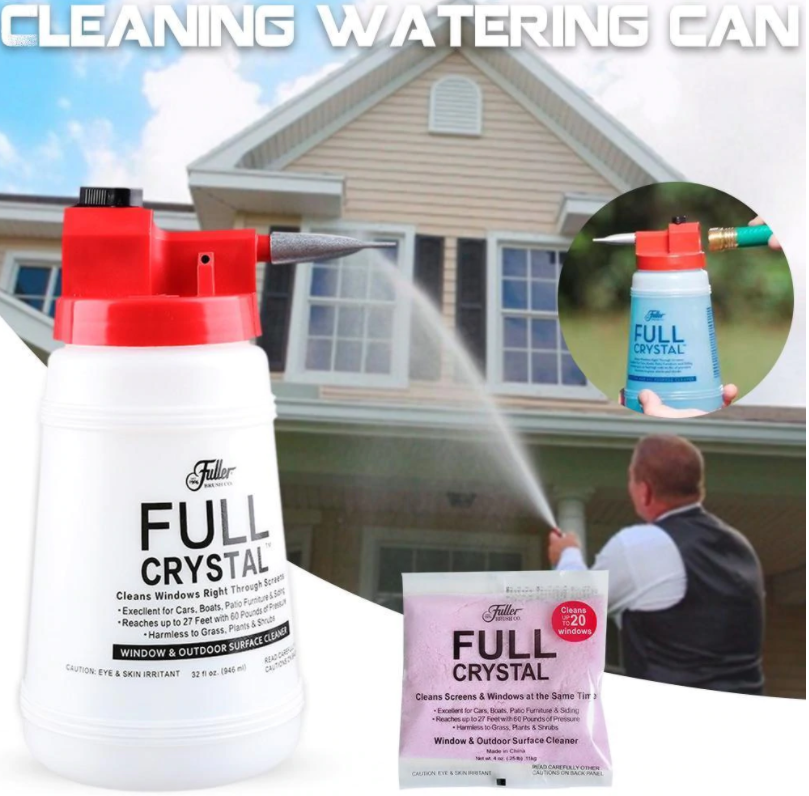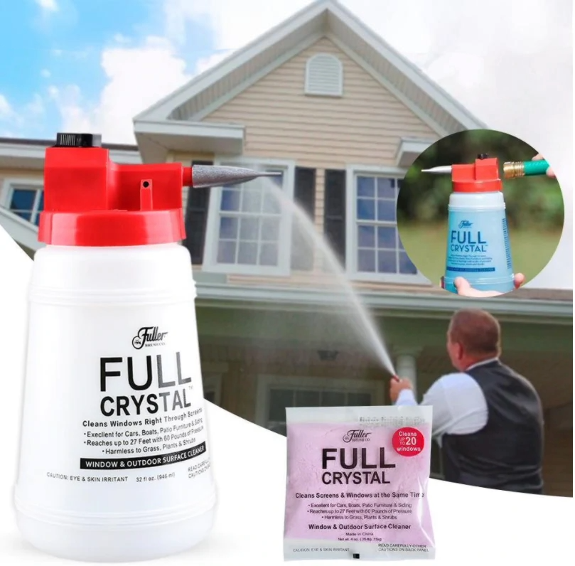Full Crystal Window Cleaner. Cleaning outside windows can be a hassle, dragging out and climbing up ladders, juggling spray cleaners and paper towels, rubbing out spots and streaks. Now you can clean your outside windows without all the hassle with Full Crystal Window Cleaner This amazing cleaner is easy just add crystals to the sprayer bottle attach to your garden hose, spray and rinse off. Blast through dirt and grime. Cleans right through screens, bird dropping, insects and more. No more ladders or struggling to get behind bushes, just stand back, spray and rinse for a streak-free, spot-free sparkle. A clean so clear your glass will disappear. Second story windows, not a problem reaches up to 27 feet with 60 lbs. of pressure. Won't hurt plants, bushes or grass. Cleans up to 20 windows. Excellent for windows, screens, siding, cars, patio furniture, boats, RVs and more!! You may also like