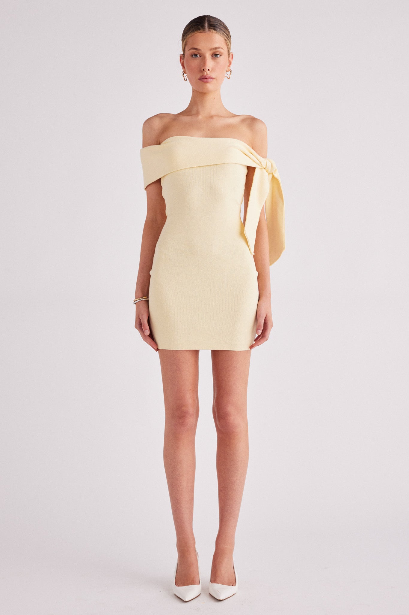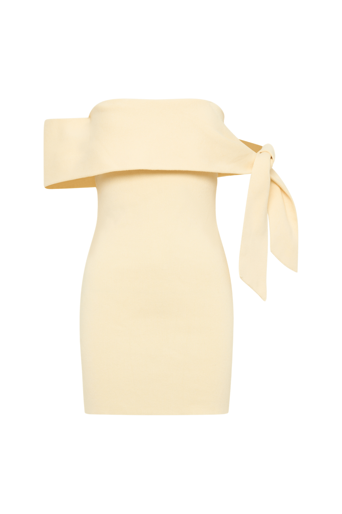 JAYMES Off-Shoulder Mini Dress | Soft Stretch Knit | Tie Arm Detail | Unlined | True to Size