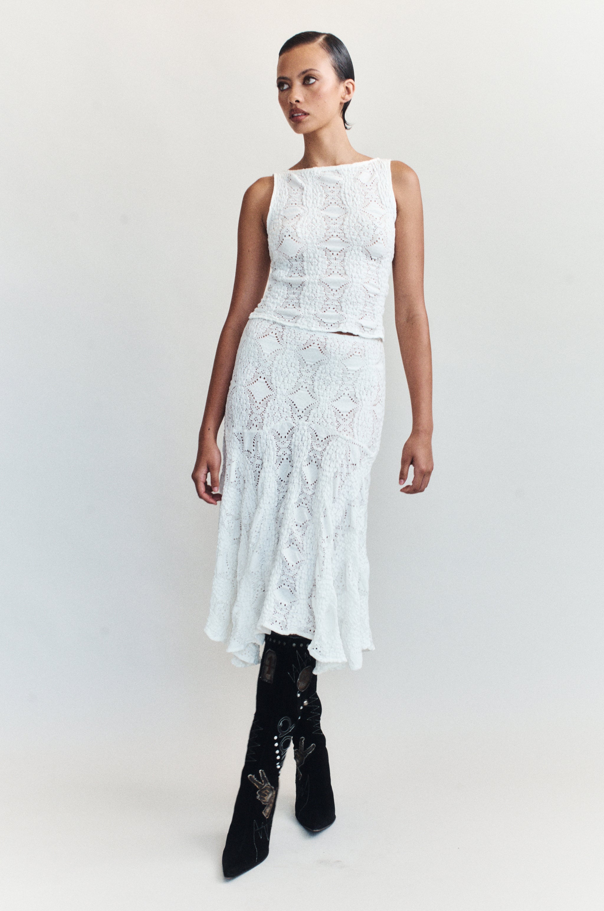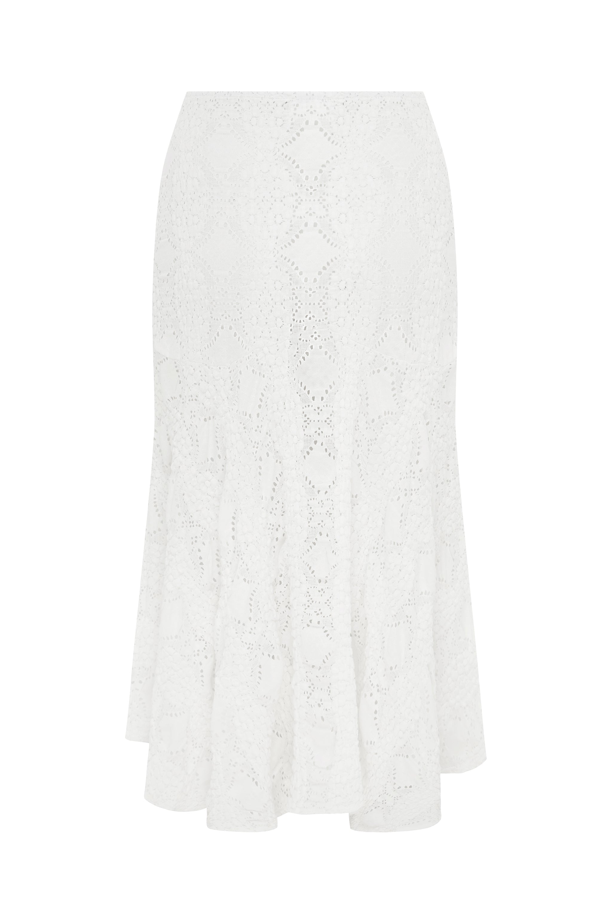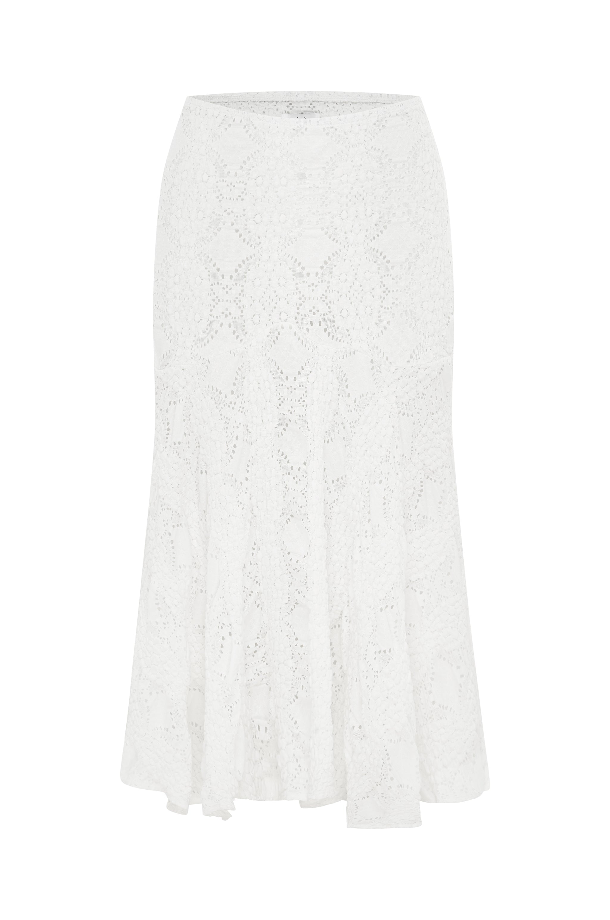 Maeve Midi Skirt | Low Rise | Custom Embroidery | White | Hip Length