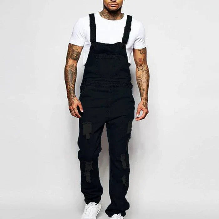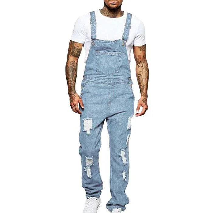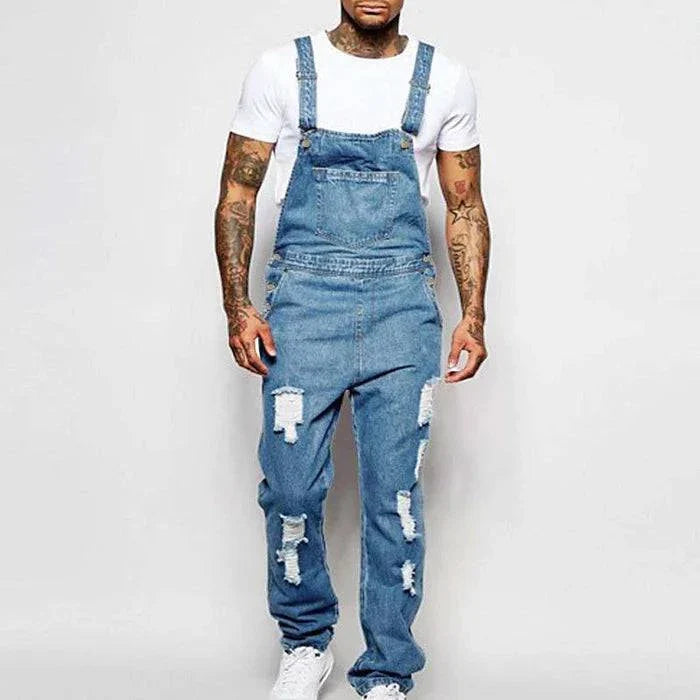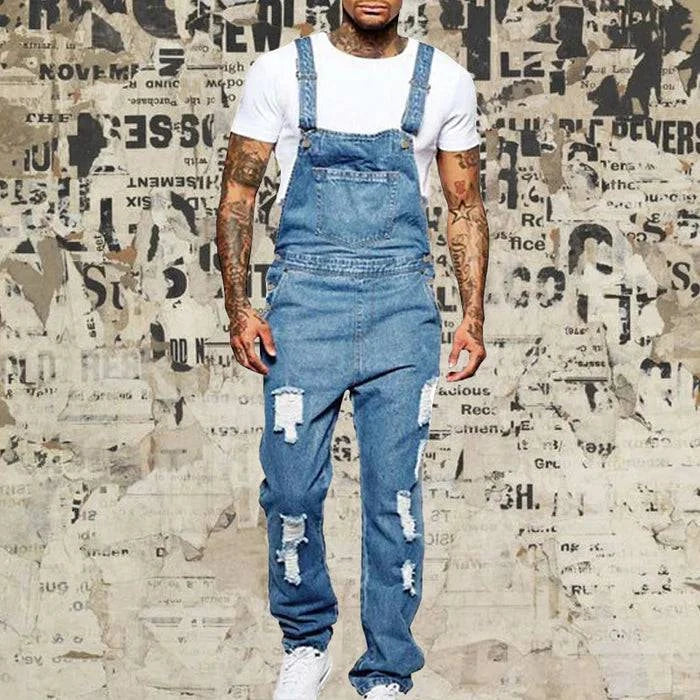 Armoire Melbourne Men's Ripped Denim Overalls | Trendy Relaxed Fit | Adjustable Straps | Vintage Streetwear | Durable Denim | Multiple Pockets | Effortless Urban Style