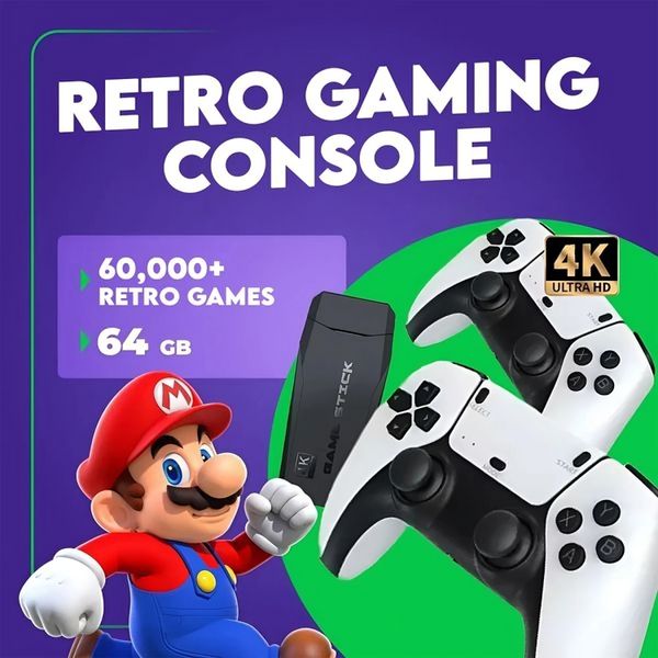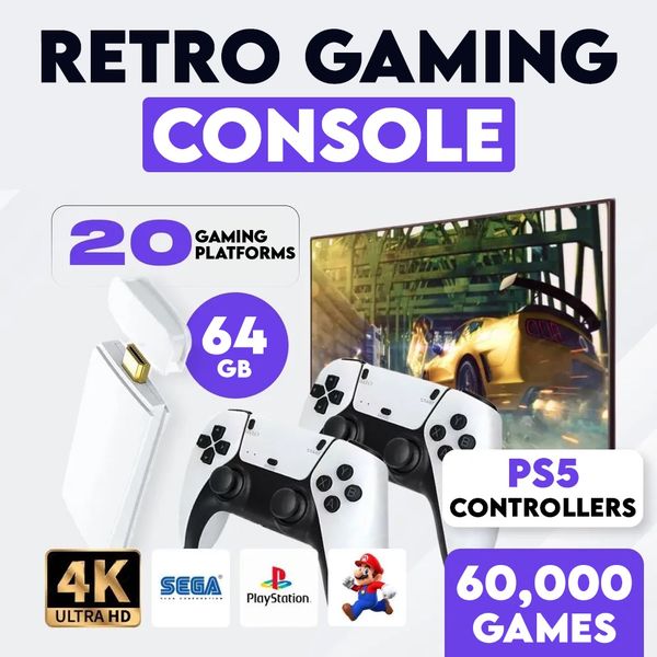 Retro Gaming Console | 60,000 Classic Games | Plug & Play | Two Wireless Controllers | Supports Up to 4 Players | Connects to TV, Projector, or PC