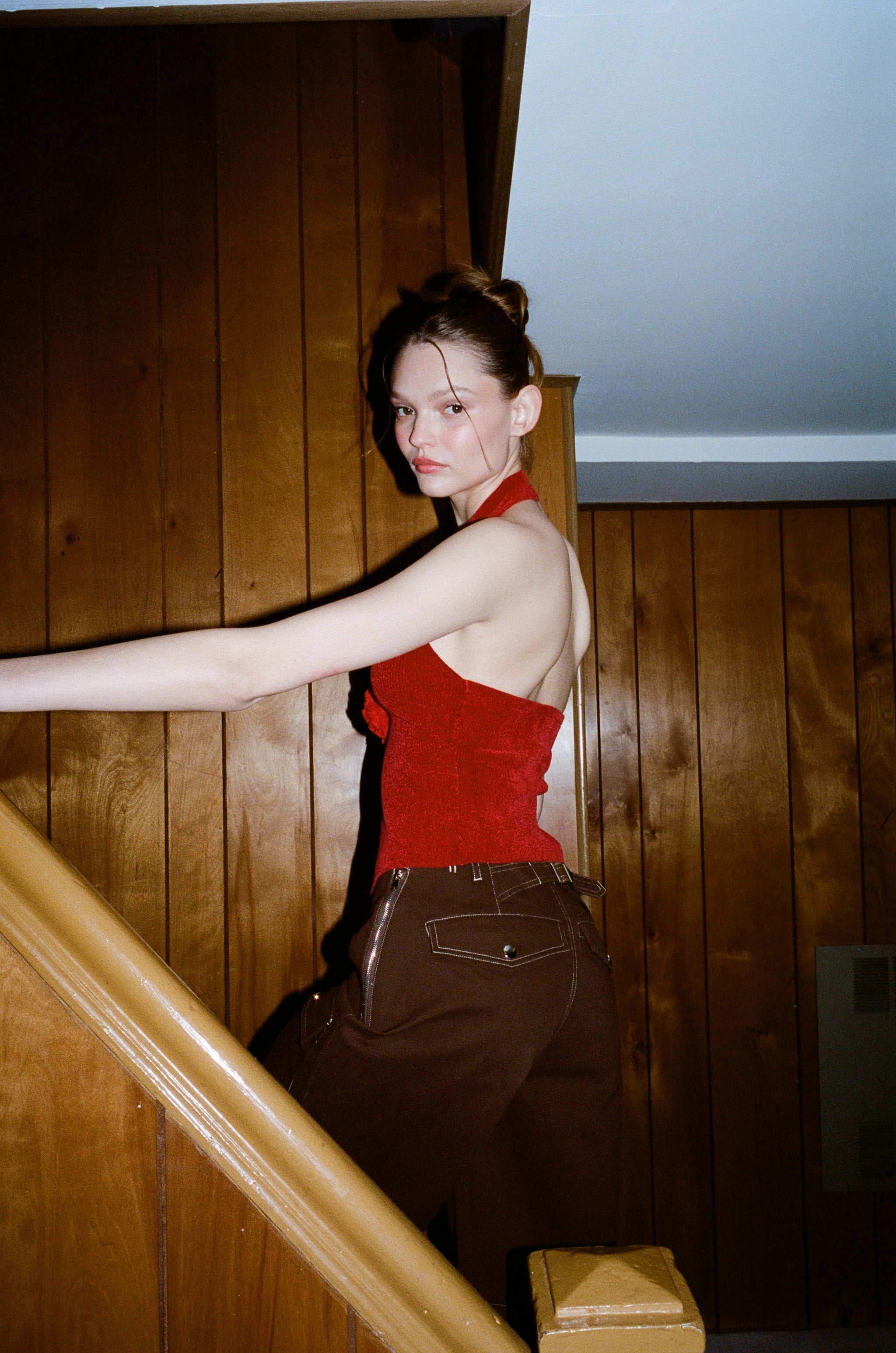 Halter Neck Rose Top | Open Front Design | Red | Bust Flower Detail | Women's Fashion Top