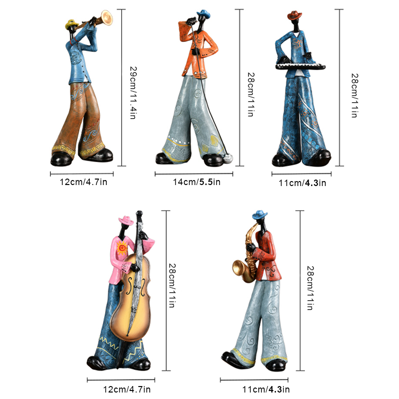 Band Art Sculpture | Hand-Painted Resin Musician Figurines | Unique Home Decor | Collectible Statue | Gifts for Fans | Vintage-Style Design | Singer, Guitar, Piano, Saxophone, Trumpet
