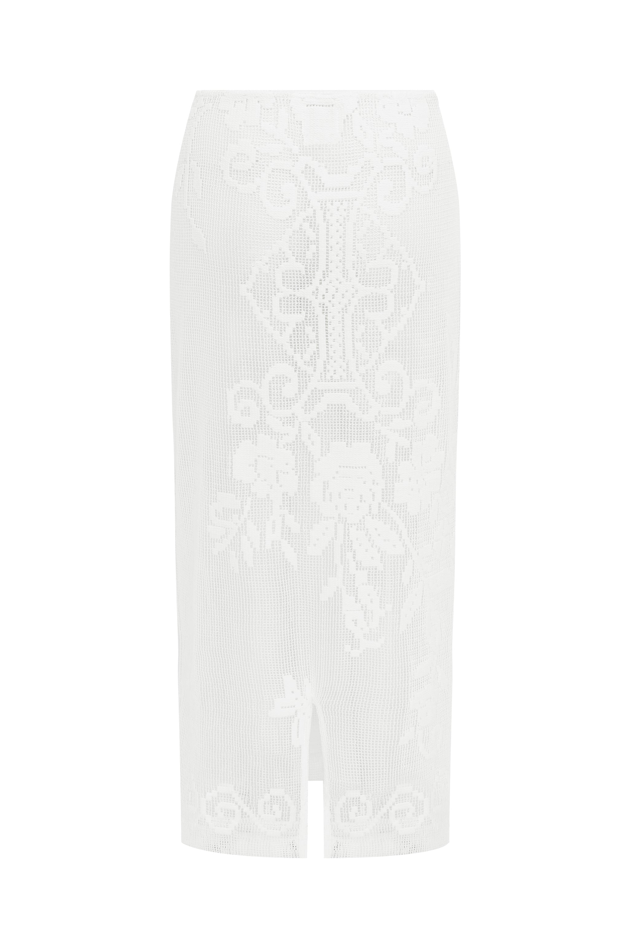 Low Rise White Midi Skirt | Elastic Waistband | Center Back Leg Split | Saint Design