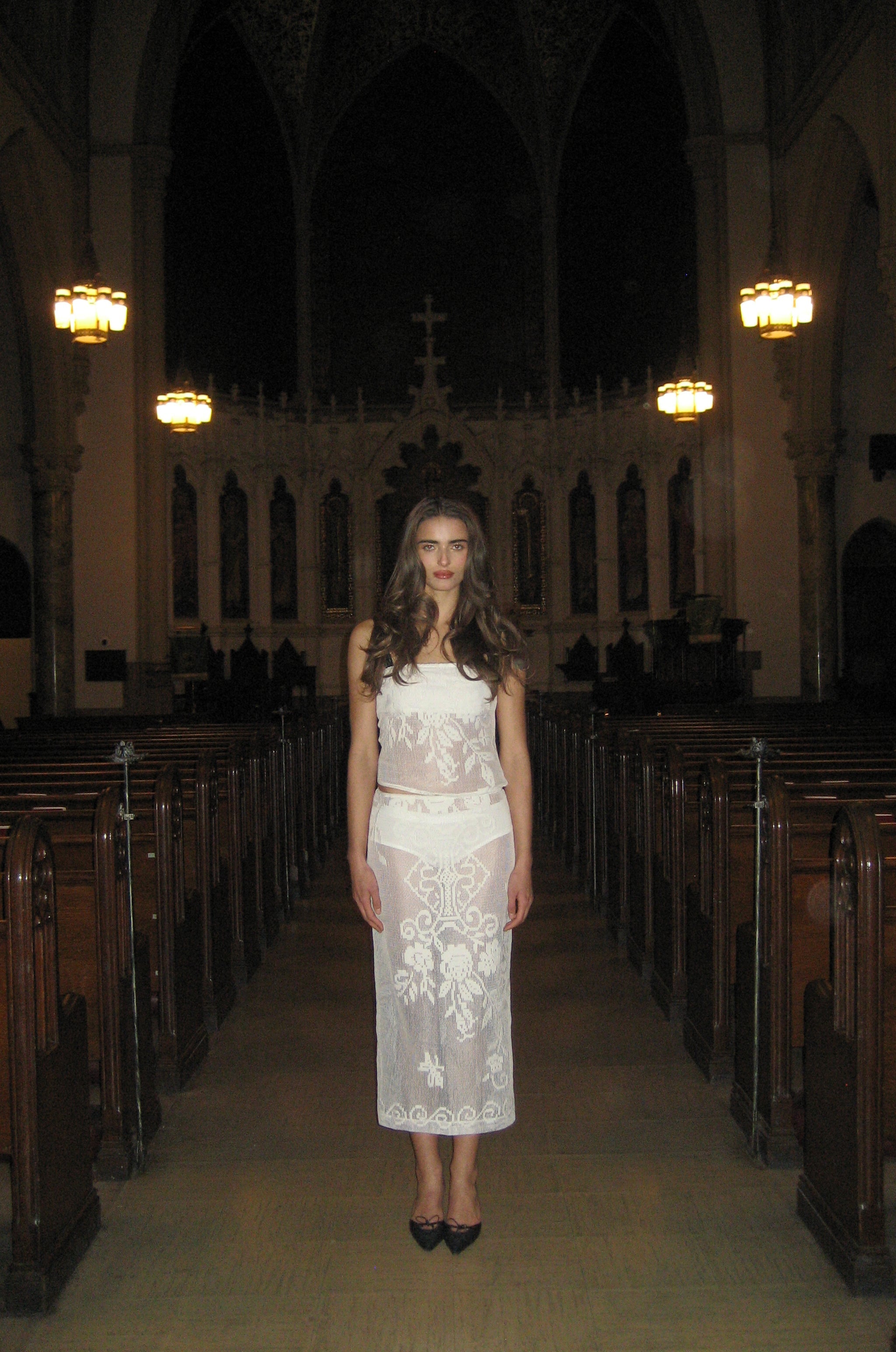 The Saint Midi Skirt is a low rise, midi length skirt designed to be worn low on the hips featuring an elasticated waistband and leg split at the centre back.