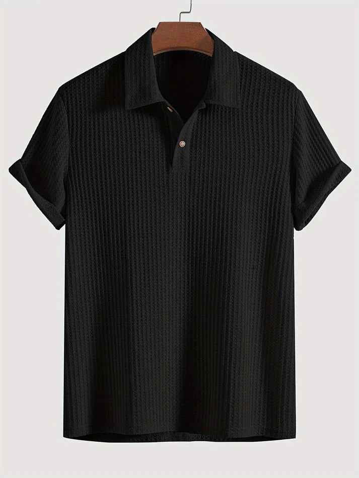 Men's Polo Shirt | Waffle Knit | High Stretch | Soft Breathable Fabric | Flexible Fit | Casual Versatile Style | Textured Design for Smart Casual Look
